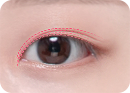 얼굴의 조화를 고려하여 알맞은 쌍꺼풀 라인의 높이와 모양을 디자인