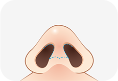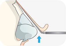 콧대 보형물이 좌우로 움직이지 않도록 골막하 박리를 통해 코뼈 바로 위쪽에 보형물이 삽입될 공간을 확보