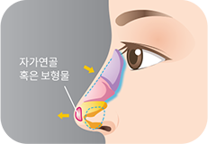 콧대, 코끝을 높이는 경우에 자가연골 혹은 보형물을 삽입